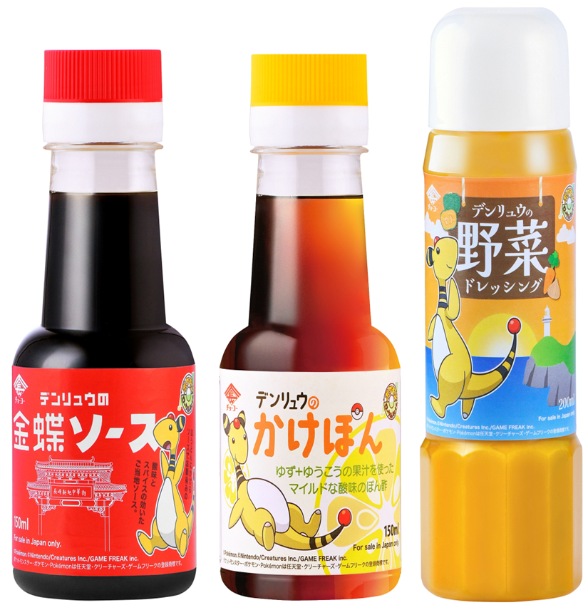 「デンリュウの金蝶ソース」・「デンリュウのかけぽん」・「デンリュウの野菜ドレッシング」